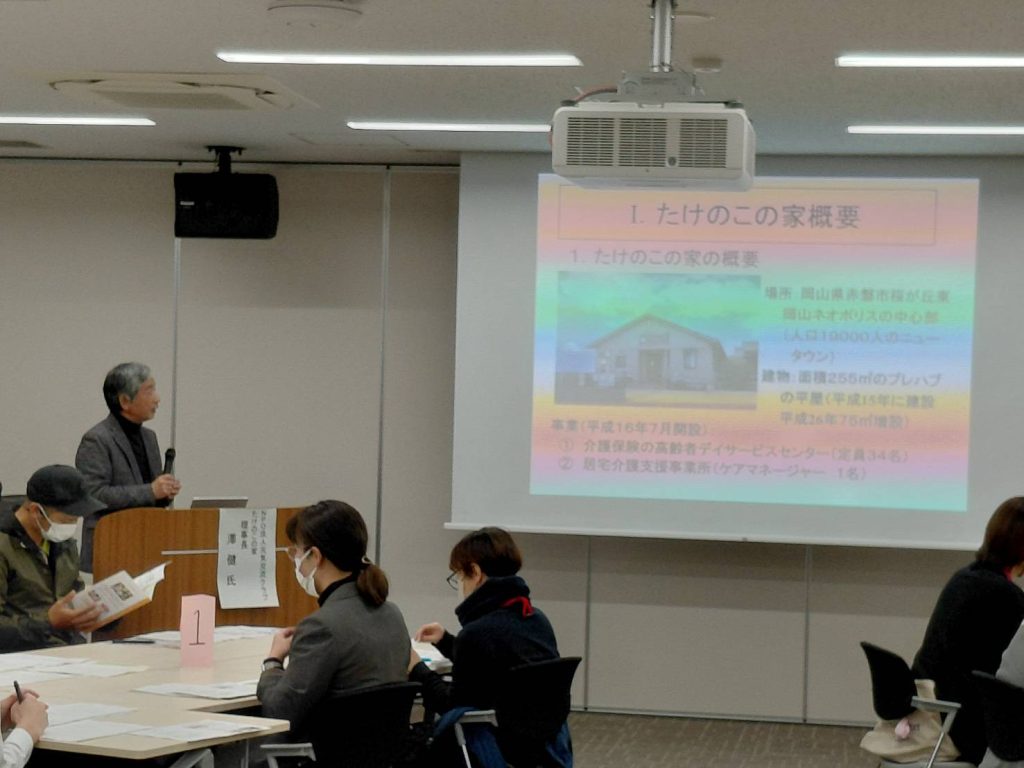 備前市通所事業所連絡会にて2026.02.18介護サービス, 高齢者デイサービス 2月17日、備前市役所にて開かれた備前市通所事業所連絡会(デイサービスの管理者の集まり)で、澤会長がたけのこの家の取り組みについてのお話をしてきました。地域の住民の皆さんによる有償ボランティアの件を中心にお話させていただきました。他市からも呼ばれることはとても光栄なことで、よい時間となりました☺介護サービス, 高齢者デイサービス日々のこと, 高齢者デイサービス2/13の昼食前の記事